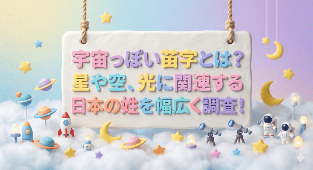 日本の苗字の多くは、地形、職業、あるいは信仰に由来していますが、その中には、こうした天体や天空の現象に直接・間接的に関連する漢字が組み込まれているものが少なくありません。それらの苗字は、私たちに現代的な「宇宙」という科学的な概念とは別に、もっと根源的な「空への憧れ」や「人知を超えた存在への畏怖」を感じさせます。