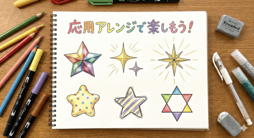 基本の五芒星がきれいに描けるようになったら、次は表現の幅を広げるための応用テクニックに挑戦しましょう。星というモチーフは非常に汎用性が高く、少し書き方を変えるだけで、立体的になったり、輝きが増したり、ポップで可愛い印象になったりと、様々な表情を見せてくれます。ここでは、デザインやイラストですぐに使えるきれいなアレンジ方法を調査しました。