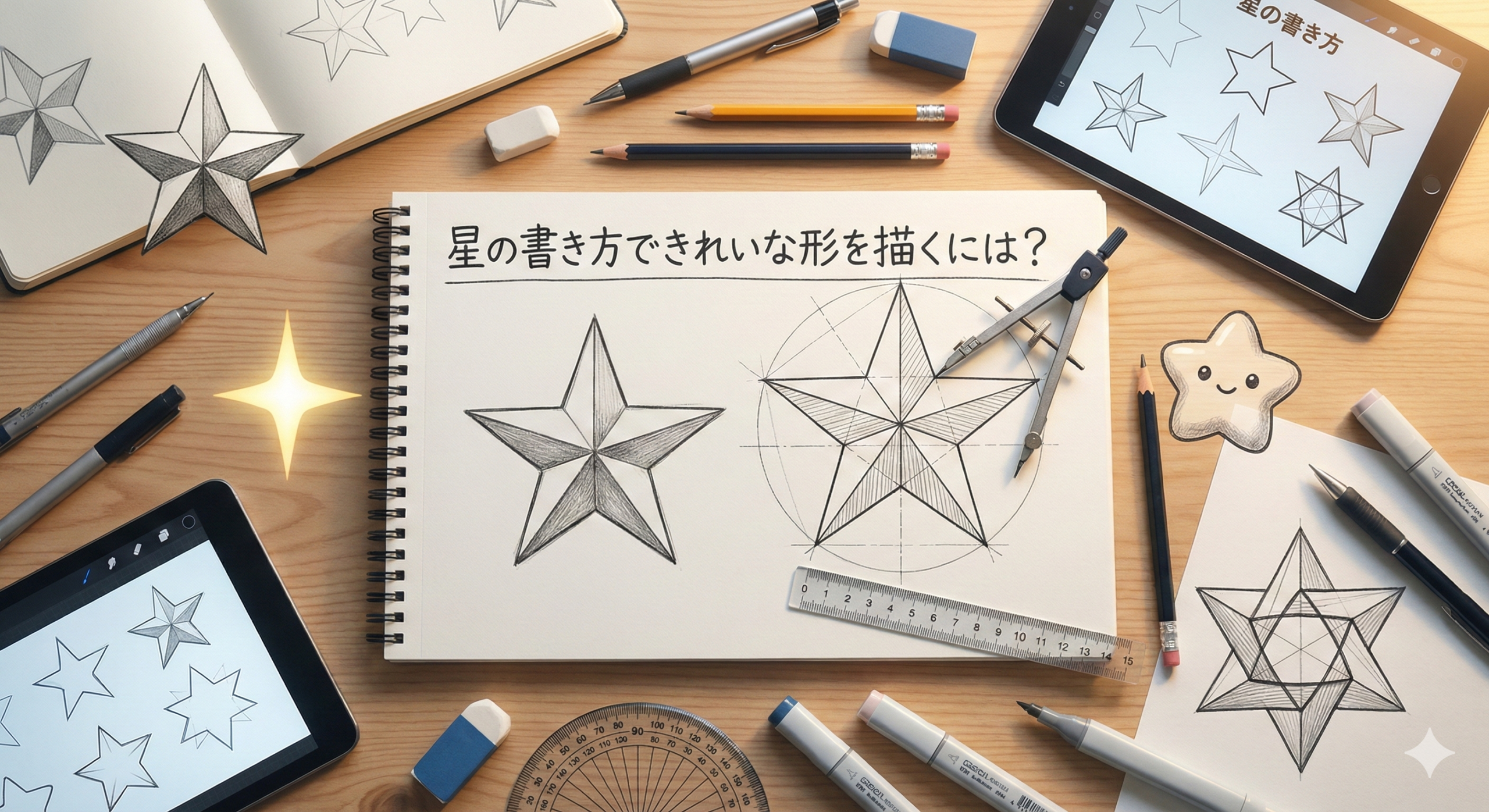 この記事では、誰もが知りたい「きれいな星の書き方」について、定規を使った製図的なアプローチから、フリーハンドでさらっと描くための裏技、さらにはイラストやロゴデザインで使える高度なアレンジテクニックまで、あらゆる角度から幅広く調査し、徹底的に解説します。絵心がないと諦めていた方でも、論理的な手順とちょっとしたコツさえ掴めば、驚くほど美しい星が描けるようになります。ぜひこの記事を参考に、理想的な星を描くスキルを身につけてください。